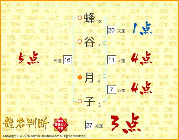 蜂谷月子さんの天運は20画の1点!