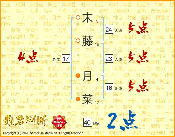 末藤月菜さんの総運は40画の2点!