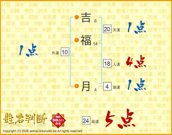 吉福月さんの総運は24画の5点!