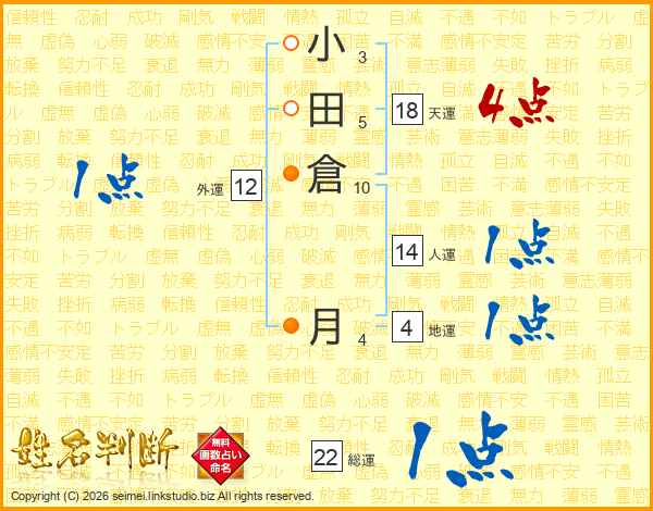 小田倉月さんの天運は18画の4点!