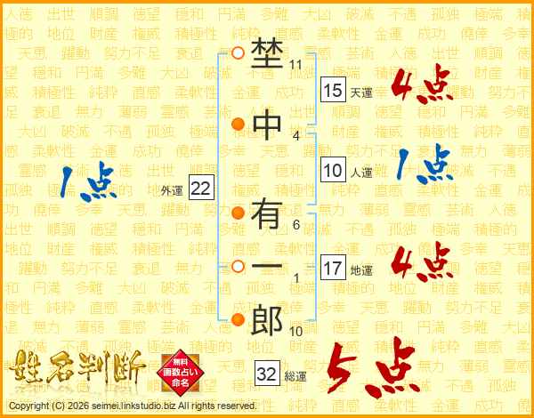 埜中有一郎さんの総運は32画の5点!