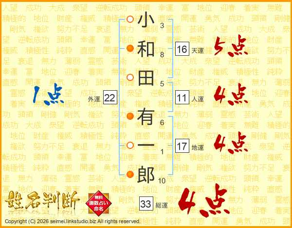 小和田有一郎さんの総運は33画の4点!
