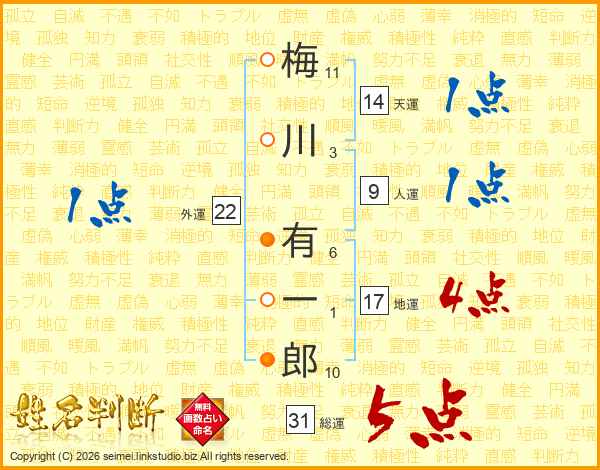 梅川有一郎さんの総運は31画の5点!