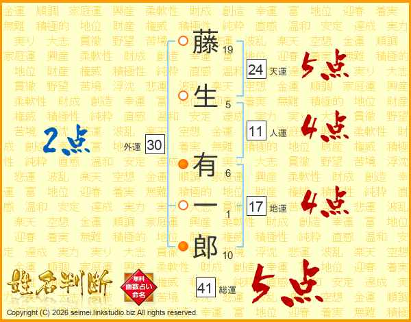 藤生有一郎さんの総運は41画の5点!