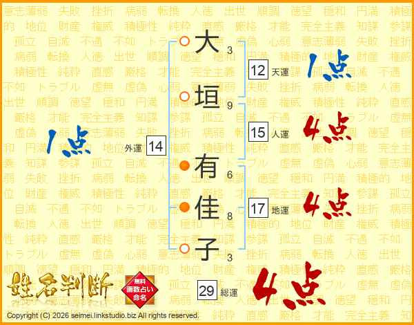 大垣有佳子さんの総運は29画の4点!