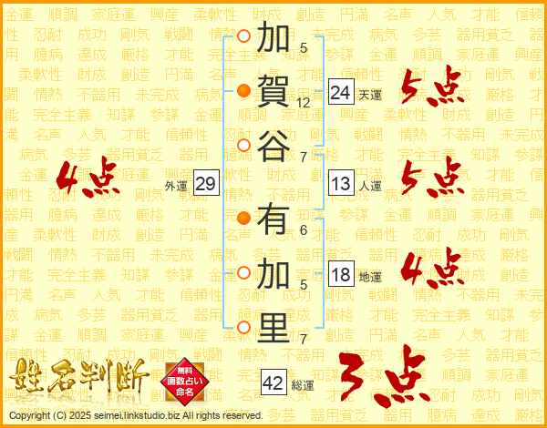 加賀谷有加里さんの総運は42画の3点!