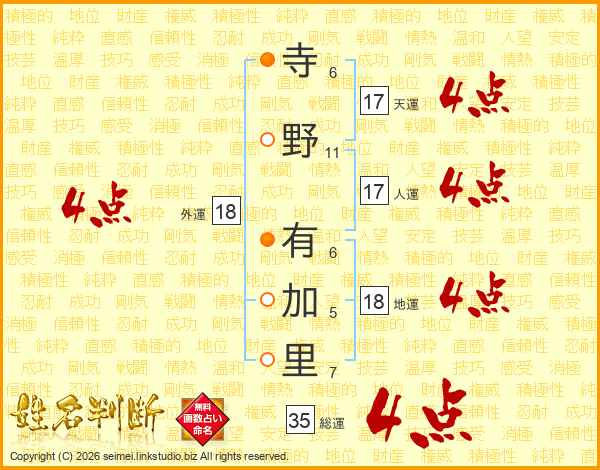 寺野有加里さんの天運は17画の4点!