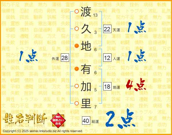 渡久地有加里さんの地運は18画の4点!