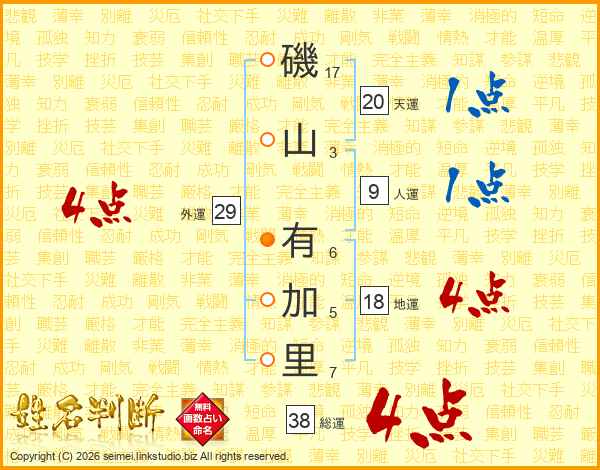 磯山有加里さんの総運は38画の4点!