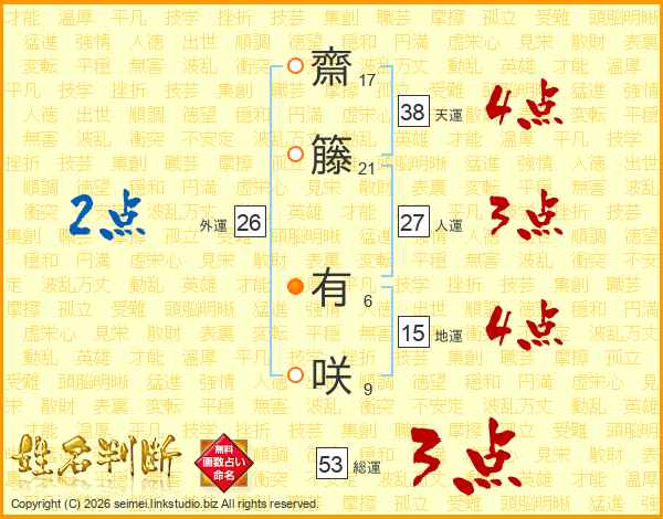 齋(17画)籐(21画) 有(6画)咲(9画)