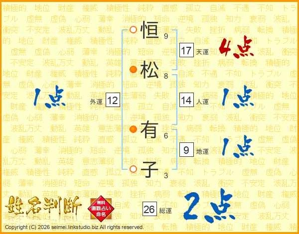 恒松有子さんの総運は26画の2点!