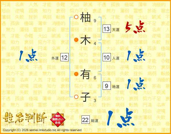 柚木有子さんの総運は22画の1点!
