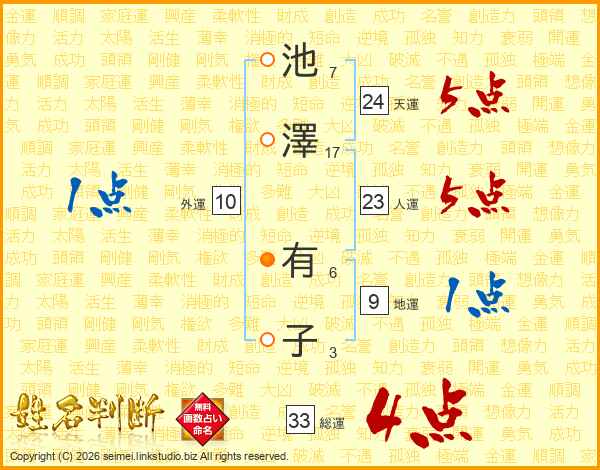 池澤有子さんの総運は33画の4点!