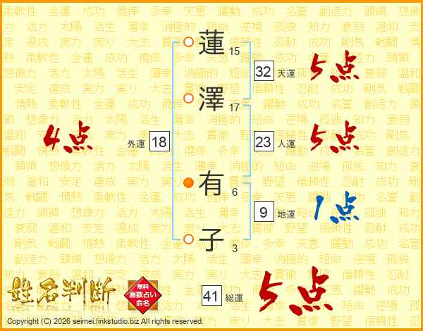 蓮澤有子さんの総運は41画の5点!