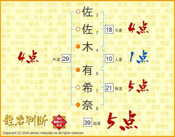 佐佐木有希奈さんの外運は29画の4点!