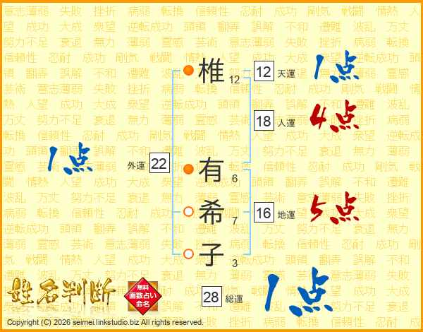椎有希子さんの外運は22画の1点!