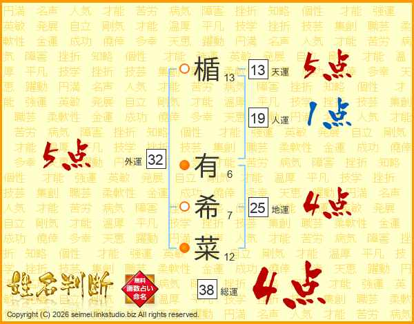 楯有希菜さんの外運は32画の5点!