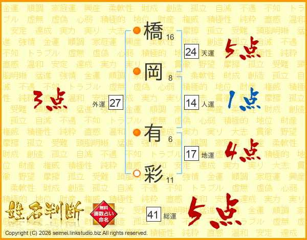 橋岡有彩さんの総運は41画の5点!