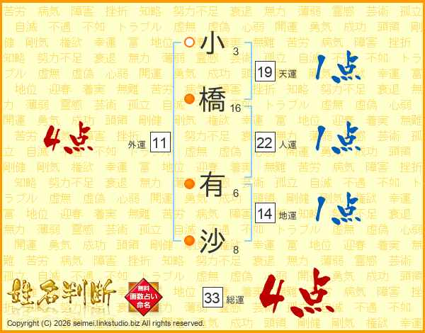 小橋有沙さんの総運は33画の4点!
