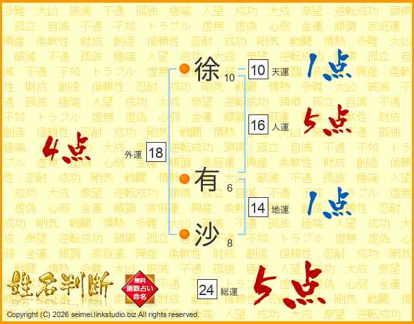 徐有沙さんの総運は24画の5点!