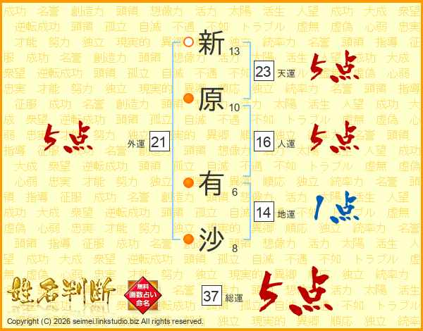 新原有沙さんの総運は37画の5点!