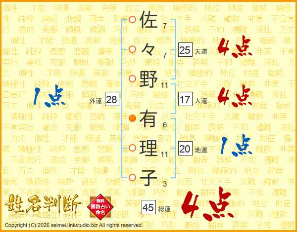 佐々野有理子さんの総運は45画の4点!
