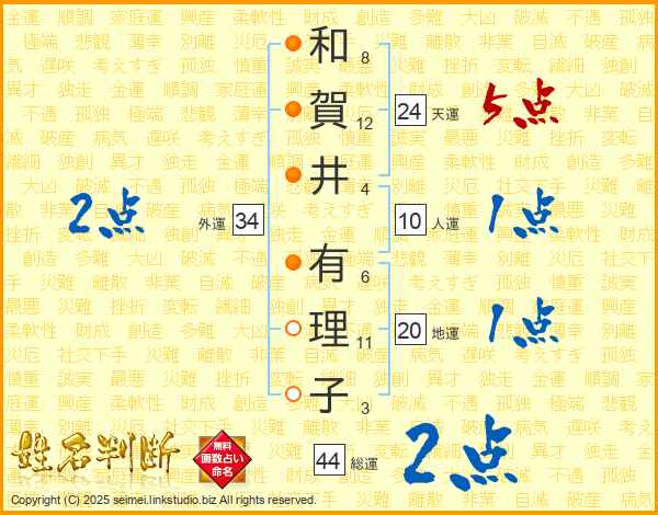 和賀井有理子さんの総運は44画の2点!