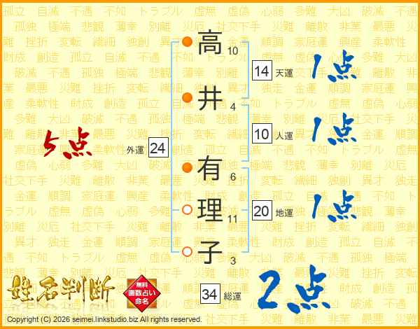 高井有理子さんの天運は14画の1点!