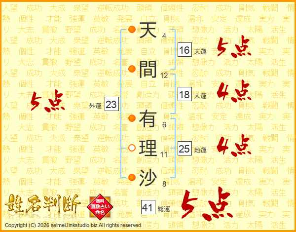 天間有理沙さんの総運は41画の5点!