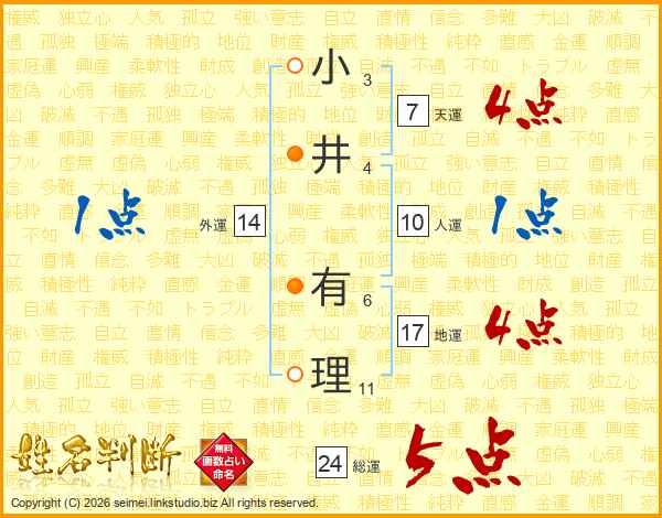 小井有理さんの総運は24画の5点!