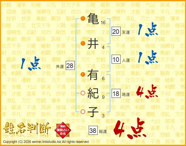 亀井有紀子さんの総運は38画の4点!