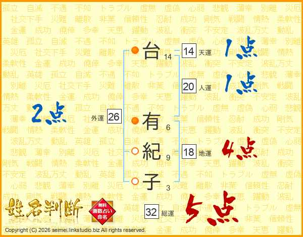 台有紀子さんの総運は32画の5点!