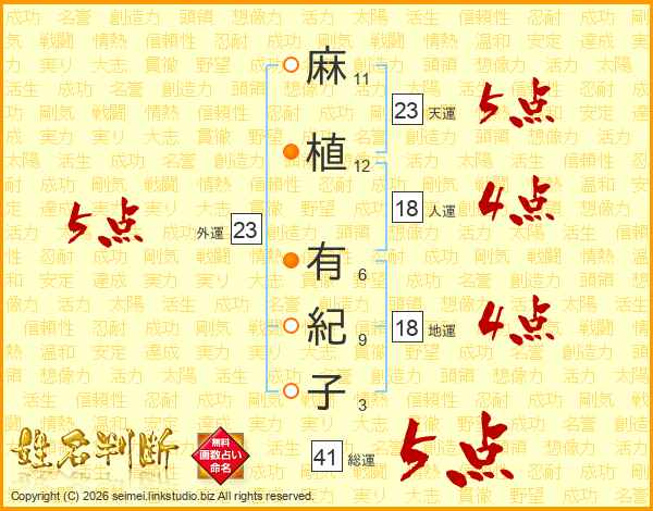 麻植有紀子さんの天運は23画の5点!