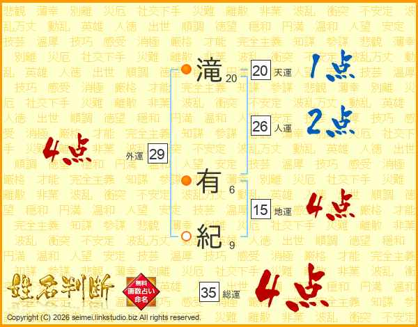 滝有紀さんの総運は35画の4点!
