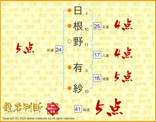 日根野有紗さんの総運は41画の5点!