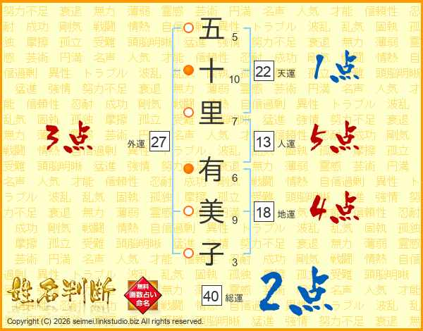 五十里有美子さんの総運は40画の2点!