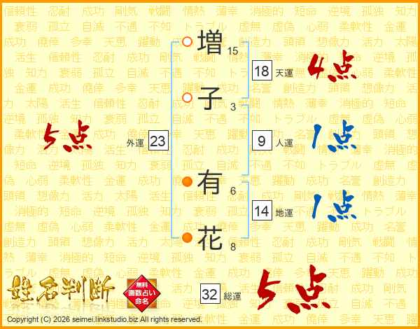 増(15画)子(3画) 有(6画)花(8画)