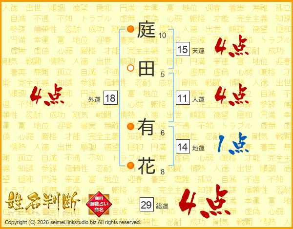 庭田有花さんの外運は18画の4点!