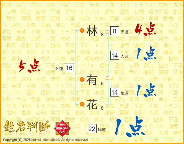 林有花さんの地運は14画の1点!