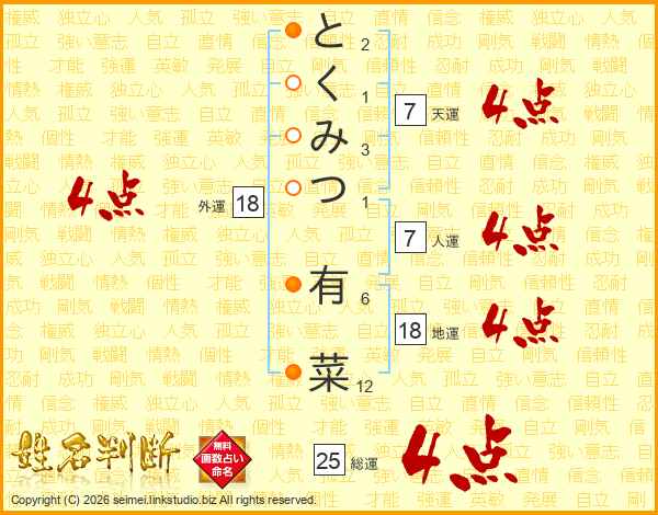 と(2画)く(1画)み(3画)つ(1画) 有(6画)菜(12画)