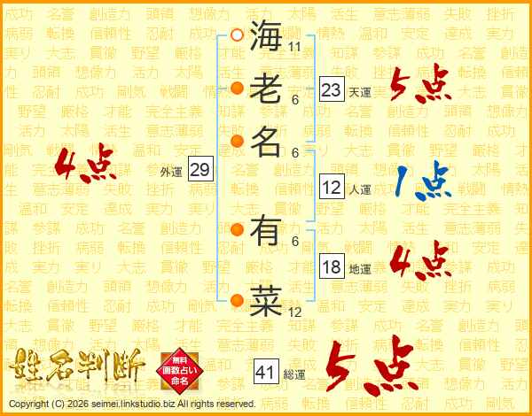 海(11画)老(6画)名(6画) 有(6画)菜(12画)