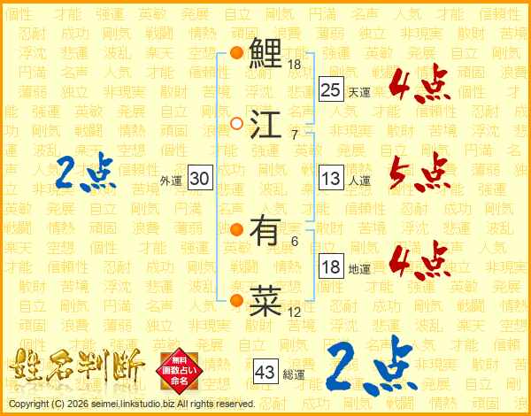 鯉江有菜さんの天運は25画の4点!