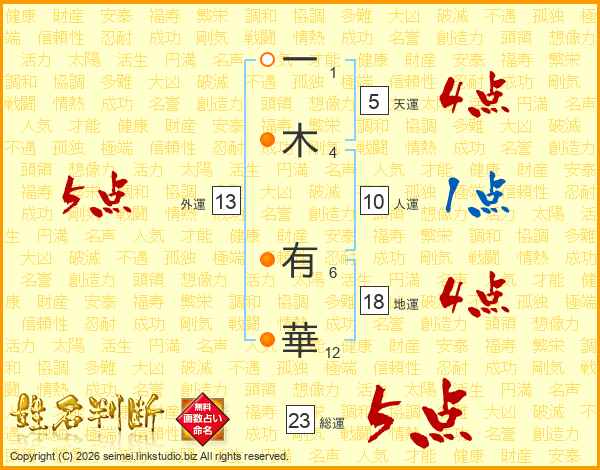 一木有華さんの総運は23画の5点!