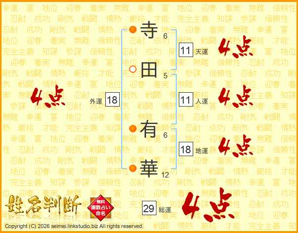 寺田有華さんの天運は11画の4点!