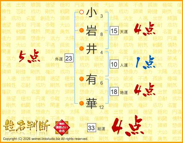 小岩井有華さんの総運は33画の4点!
