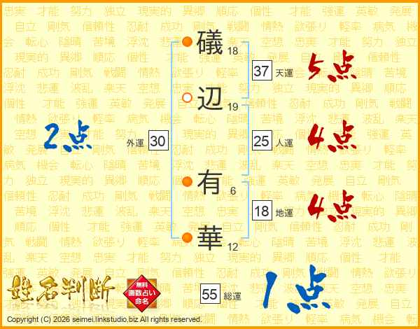 礒辺有華さんの人運は25画の4点!