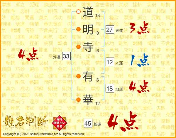 道明寺有華さんの外運は33画の4点!