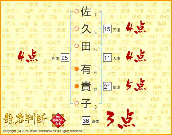 佐久田有貴子さんの天運は15画の4点!