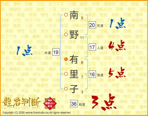 南野有里子さんの人運は17画の4点!
