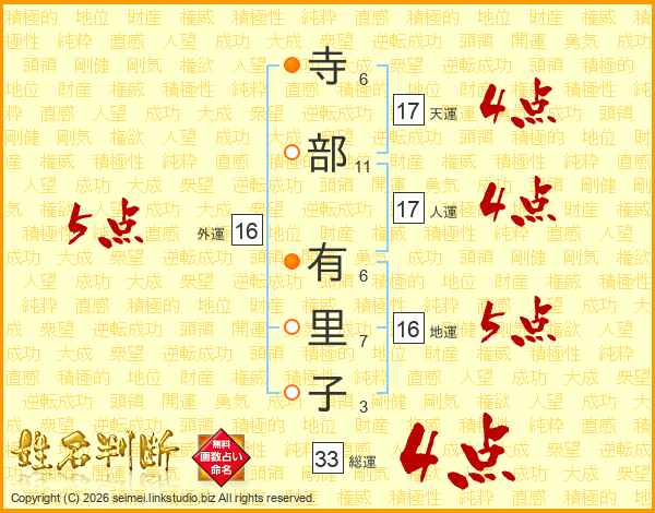 寺部有里子さんの総運は33画の4点!